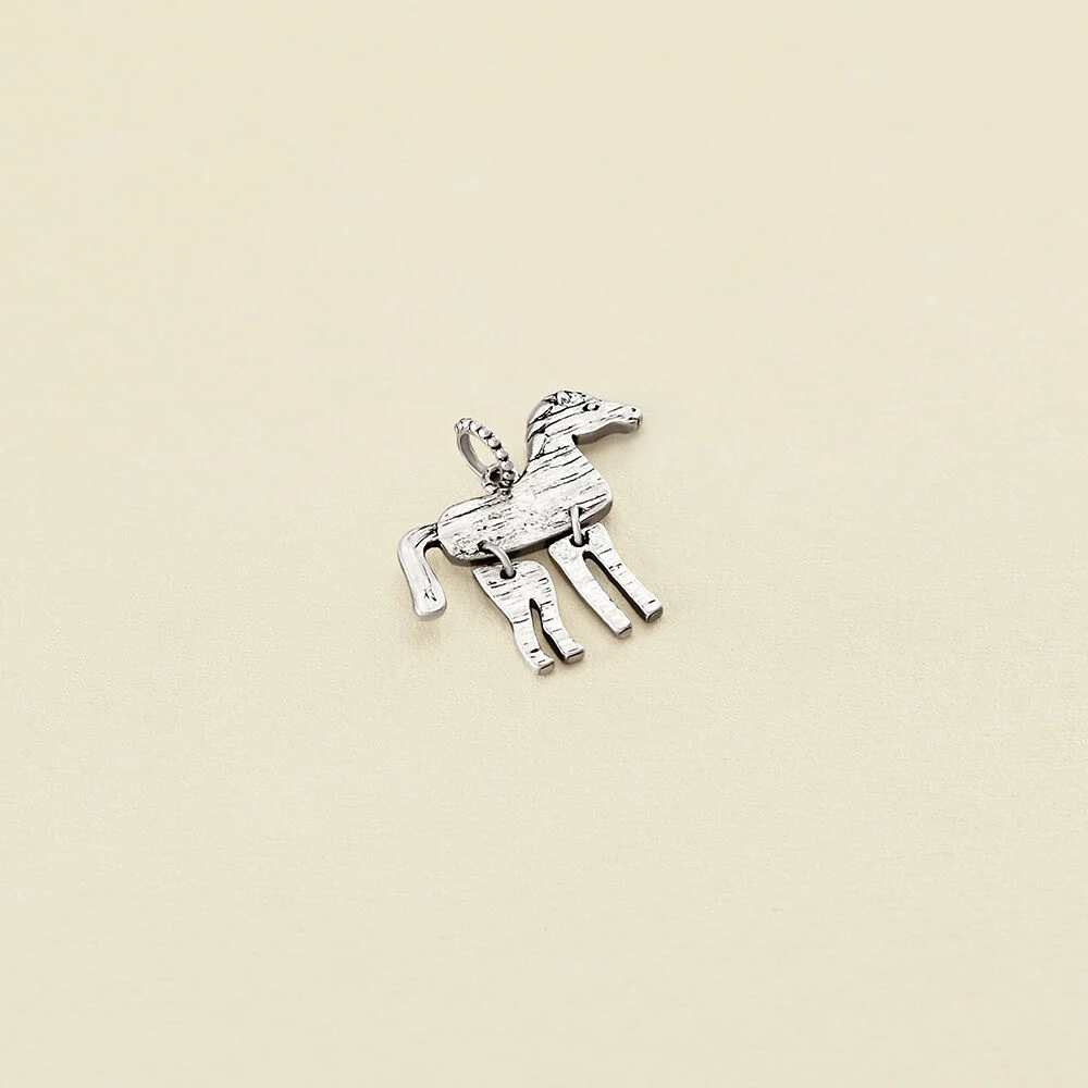 Un amuleto que refuerza el coraje y protege la libertad de cada uno.El caballo es símbolo de determinación y coraje; un colgante de la suerte para vivir la libertad y afrontar la vida con valentía. Crea tu collar personalizado con los amuletos de moda de la nueva colección de Maria Pombo X AGATHA. Joya acabada en rodio.