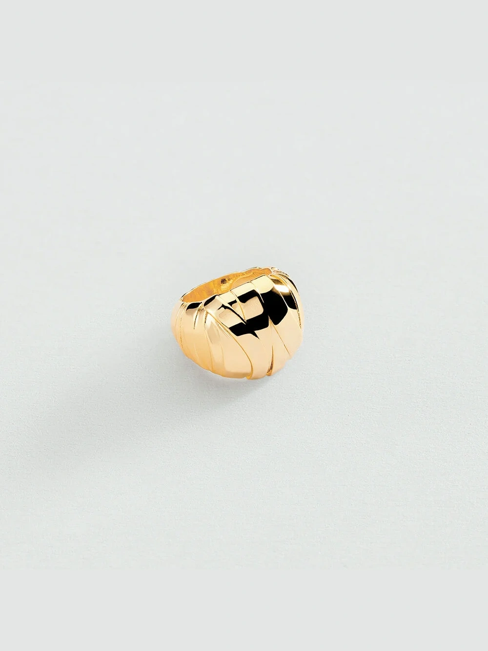 Sortija en acabado dorado con textura distintiva y circonitas brillantes incrustadas. Joya de tendencia absoluta de la colección BE by María Pombo perfecta para cualquier ocasión. Su diseño chunky definitivo aporta sofisticación y luz a tus outfits. Pieza versátil ideal como fondo de armario con auténtico estilo francés. Diseño contemporáneo que fusiona elegancia parisina con modernidad radiante.