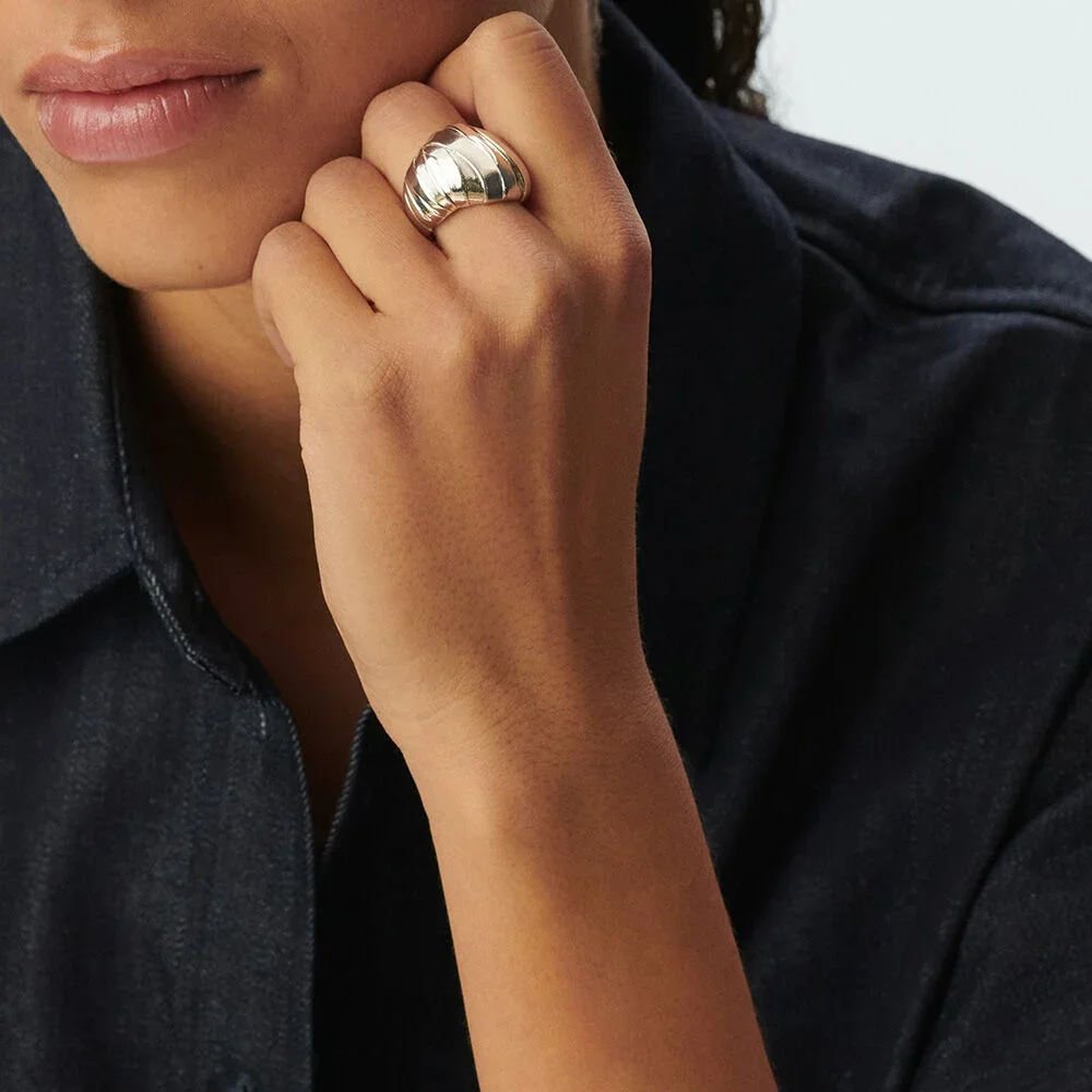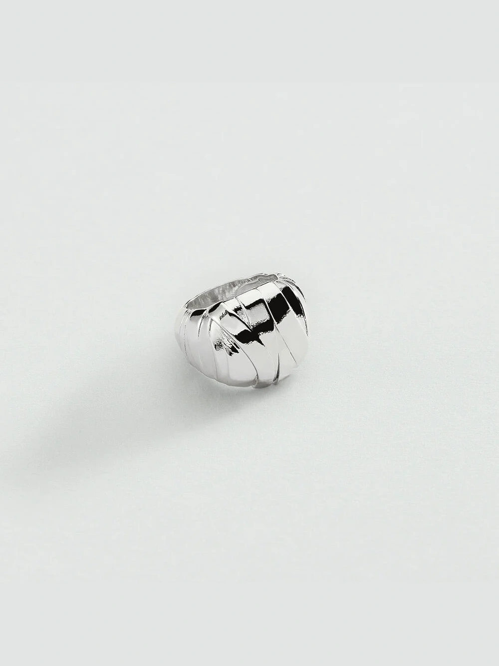 Sortija en acabado plateado con textura distintiva característica de la colección BE by María Pombo. Joya de tendencia absoluta perfecta para cualquier ocasión del día. Su diseño chunky definitivo aporta sofisticación a tus outfits diarios con elegancia. Pieza versátil ideal como fondo de armario con estilo francés auténtico. Anillo contemporáneo que fusiona elegancia parisina con modernidad refinada.
