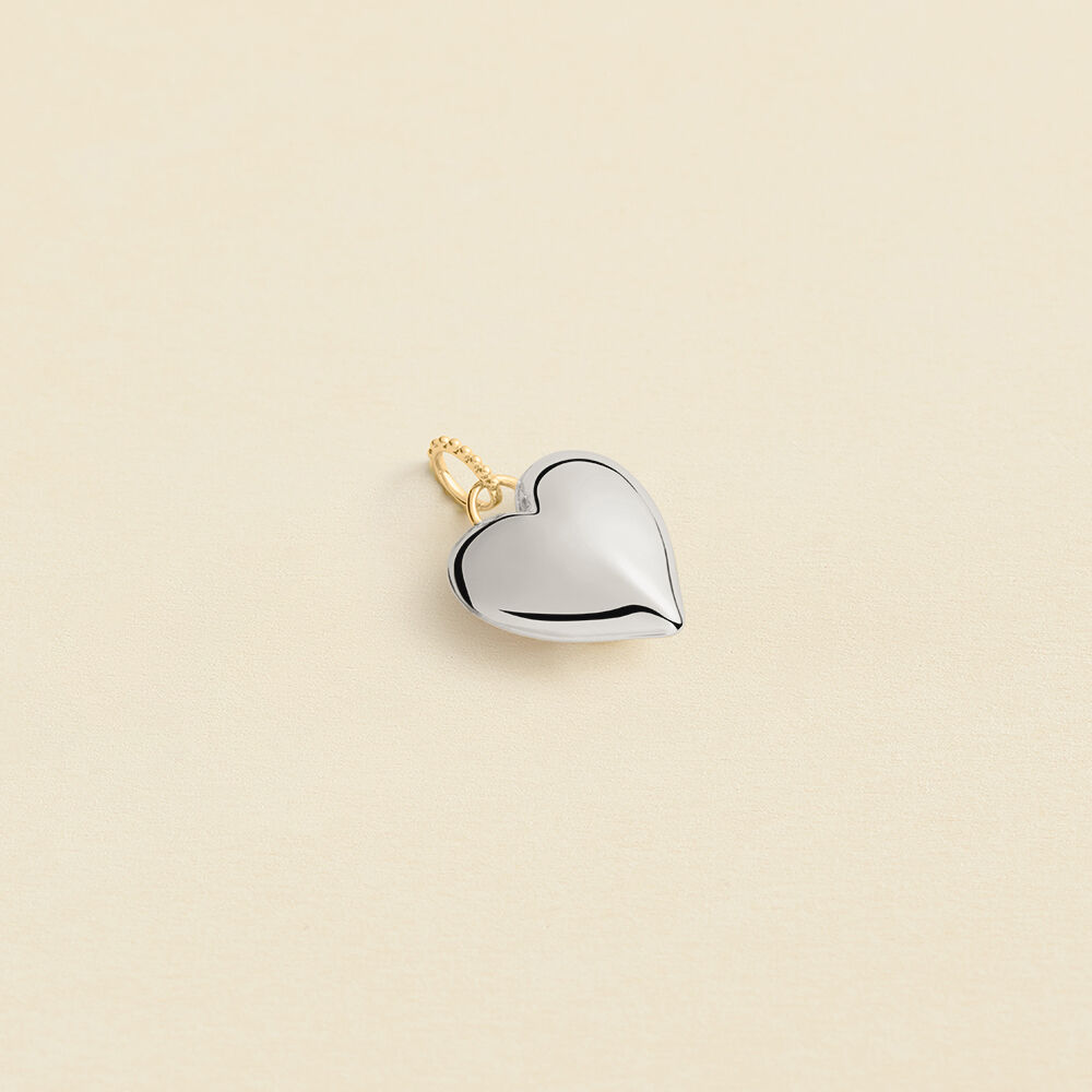 Amuleto en forma de corazón, perfecto para simbolizar grandes amores como pareja, familia o amistad. Su diseño bicolor combina con cualquier look. Crea tu collar personalizado con los amuletos de la colección de Maria Pombo X AGATHA.