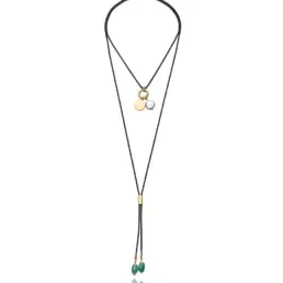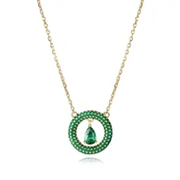 Colgante maxi de la colección Giselle in Paris de Sunfield. Realizado en plata de ley 925 con baño de oro amarillo de 9 kt, destaca por sus cabujones de turmalina rosa y calcedonia, realzados con circonitas en tonos peridoto y pink light. Diámetro de 36 mm y cadena de 80 cm.