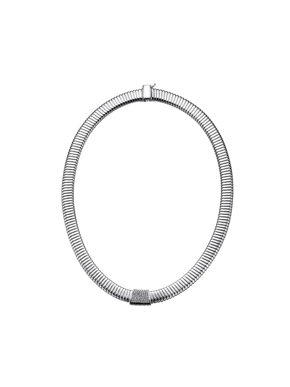 Collar de la colección Edición Limitada de Durán Exquse fabricado en plata con acabado rodio. Cierre de mosquetón y diseño con circonitas para un brillo refinado. Ideal para elevar el estilo del día a día.