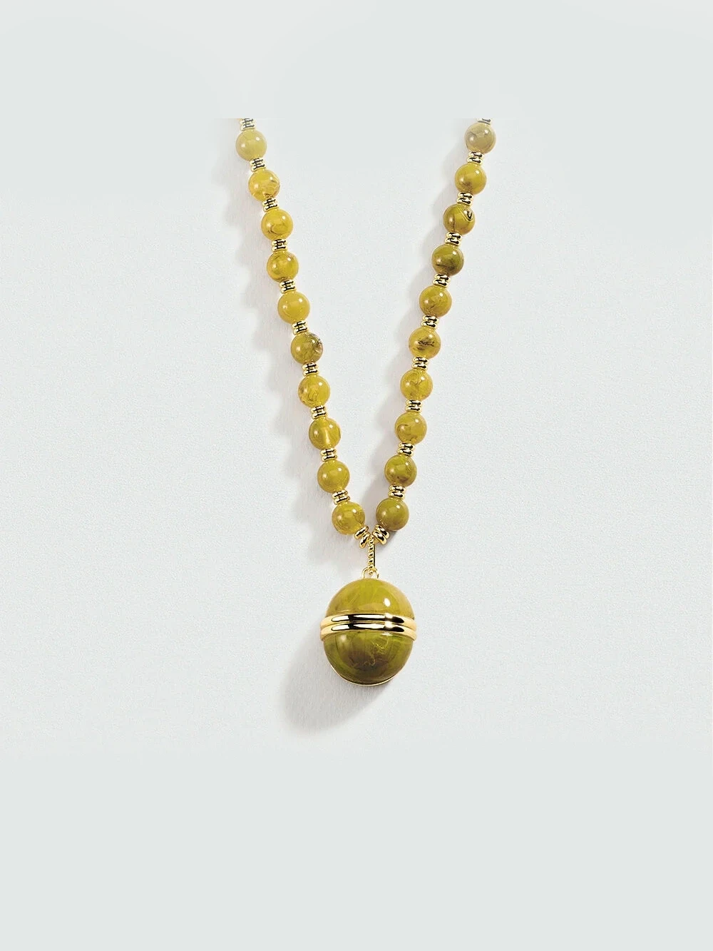 Collar de longitud extendida elaborado en acetato color verde caqui con cabujón a tono coordinado. Diseño de la colección BE by María Pombo que aporta personalidad definitiva a todos tus conjuntos y atrapa todas las miradas. Perfecto para combinar con criollas y anillo a tono creando un total look coordinado impactante. Joya que captura miradas con elegancia parisina. Pieza versátil ideal para múltiples ocasiones.
