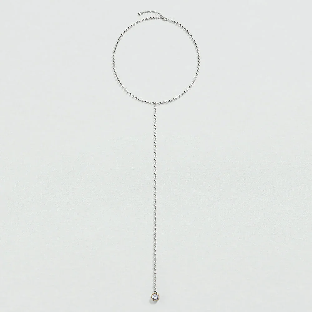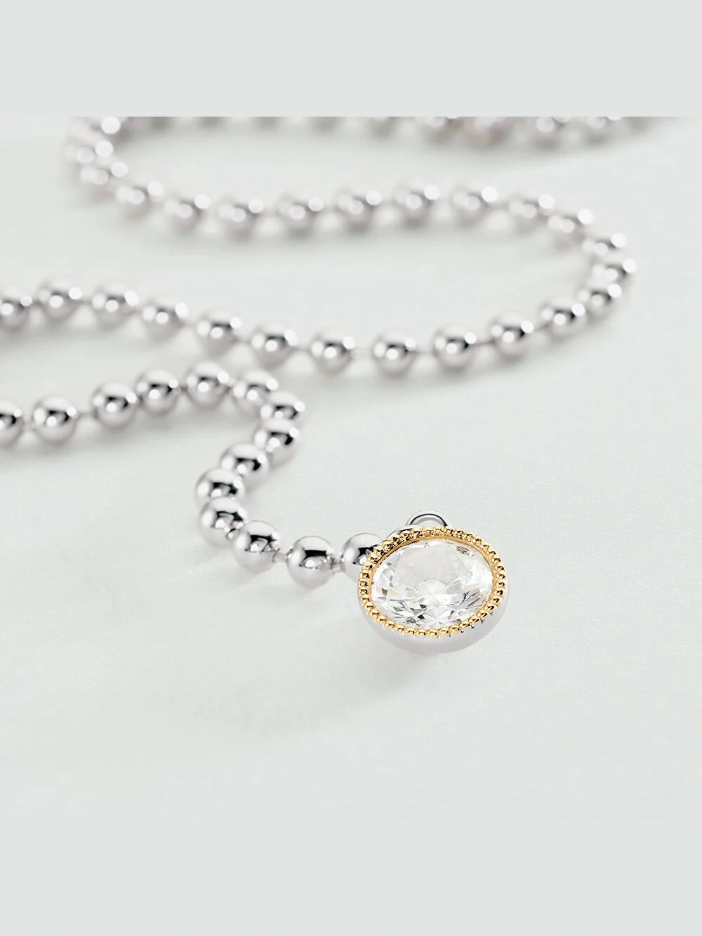 Collar corto de acero plateado con cadena elegante y circonita de tamaño XL protagonista. Joya de tendencia absoluta de la colección BE by María Pombo que te salvará en cualquier situación. Su diseño aporta luz radiante y brillo sofisticado a todos tus outfits. Pieza versátil perfecta como fondo de armario para el día a día y ocasiones especiales. Diseño francés que combina elegancia atemporal con toques modernos.