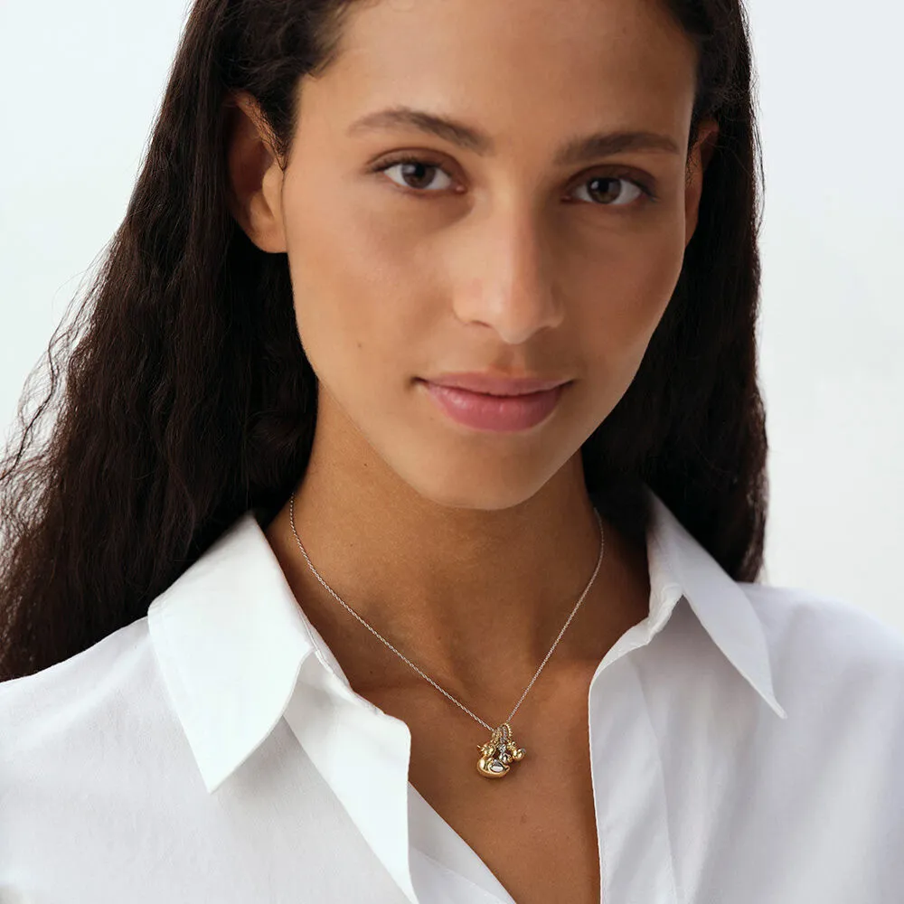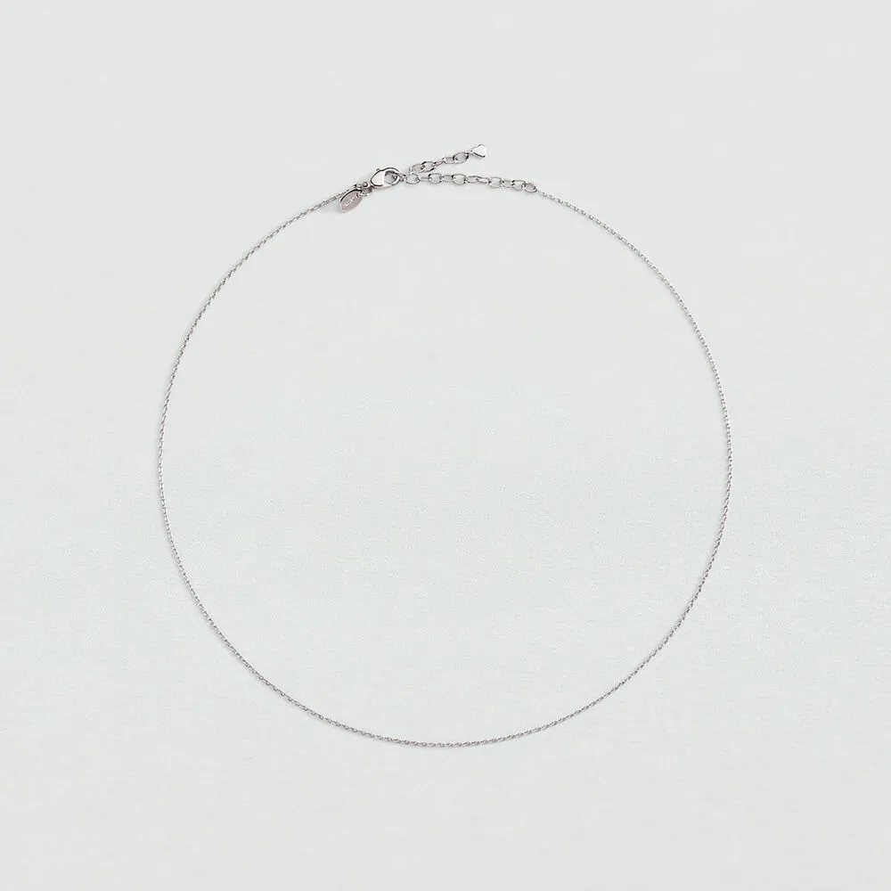 Cadena midi tipo forçat con acabado plateado, pensada para lucir sola o personalizada con charms pavé de la colección Lucky. Longitud aproximada 390 mm con alargador de 50 mm para ajuste cómodo al cuello.