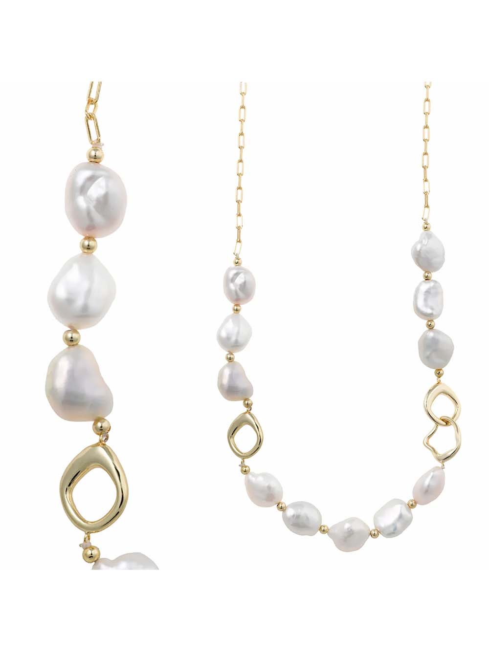 Collar Salvatore Plata con baño dorado y perlas irregulares, un complemento versátil y favorecedor para tu día a día.