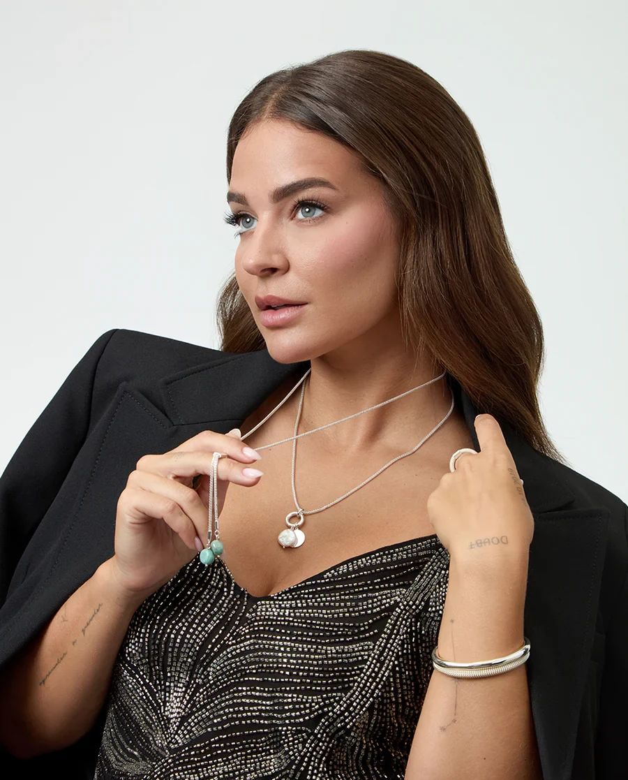 Los colgantes de piedras naturales añaden un toque orgánico y distintivo, creando un contraste perfecto entre lo moderno y lo natural. Un accesorio versátil que refleja la esencia del estilo actual: auténtico, fresco y con carácter propio.