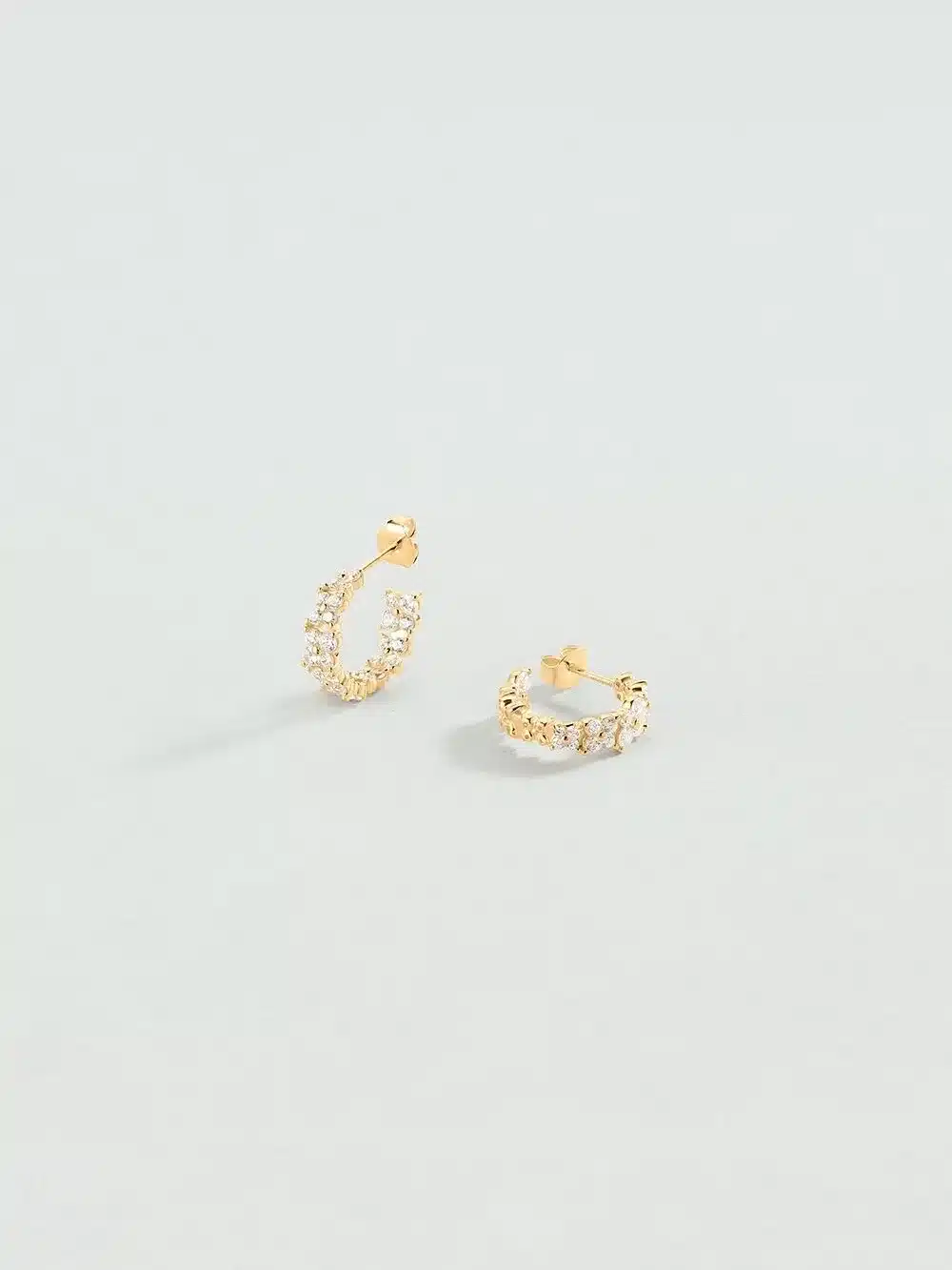 Las criollas Beloved de Agatha Paris están elaboradas en plata de ley con baño de oro y adornadas con pequeñas flores de circonitas en color cristal. Su tamaño medio las convierte en una opción muy versátil para el día a día y para ocasiones especiales, ofreciendo un toque romántico y luminoso sin resultar excesivas. El motivo floral se integra de forma armoniosa en el aro, aportando detalle y movimiento.