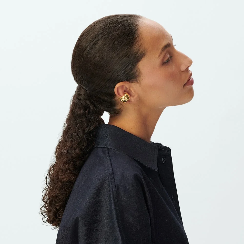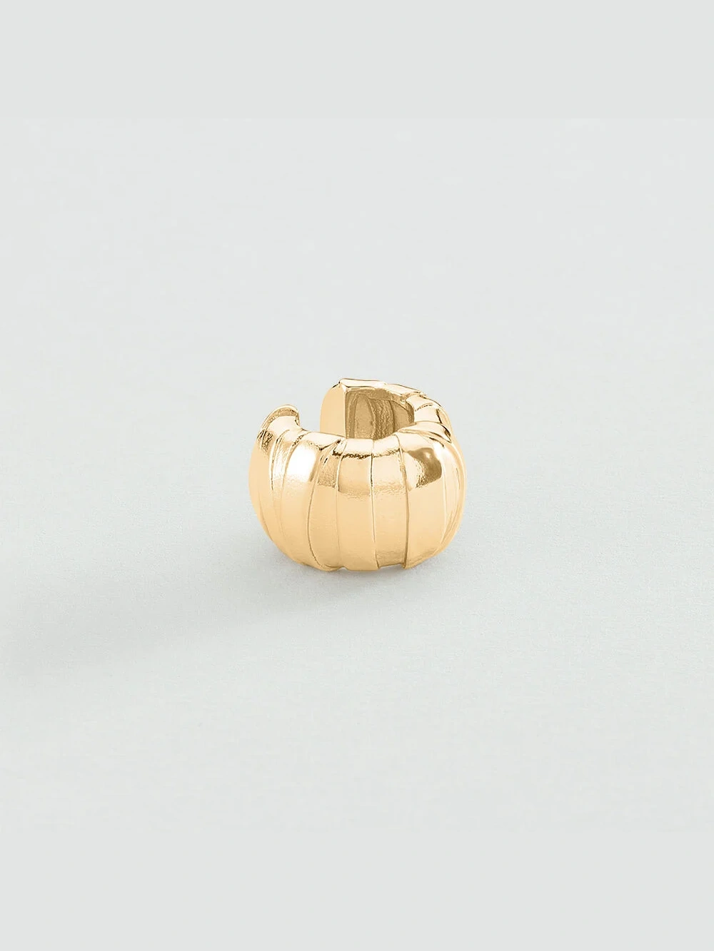Pendiente de diseño innovador tipo ear cuff XL en acabado dorado con textura característica. Accesorio de la colección BE by María Pombo que marca tendencia absoluta en complementos. Su estética chunky aporta personalidad definitiva a tus outfits con máxima actitud. Pieza statement perfecta para looks vanguardistas con auténtico sello francés. Diseño contemporáneo que fusiona elegancia parisina con modernidad urbana.