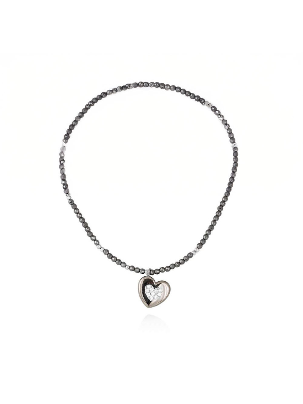 Gargantilla de plata de primera ley (925) con baño de rodio y rutenio y circonita blanca. (Largo de gargantilla: 40+5 cm. Tamaño del colgante: 13 mm.)