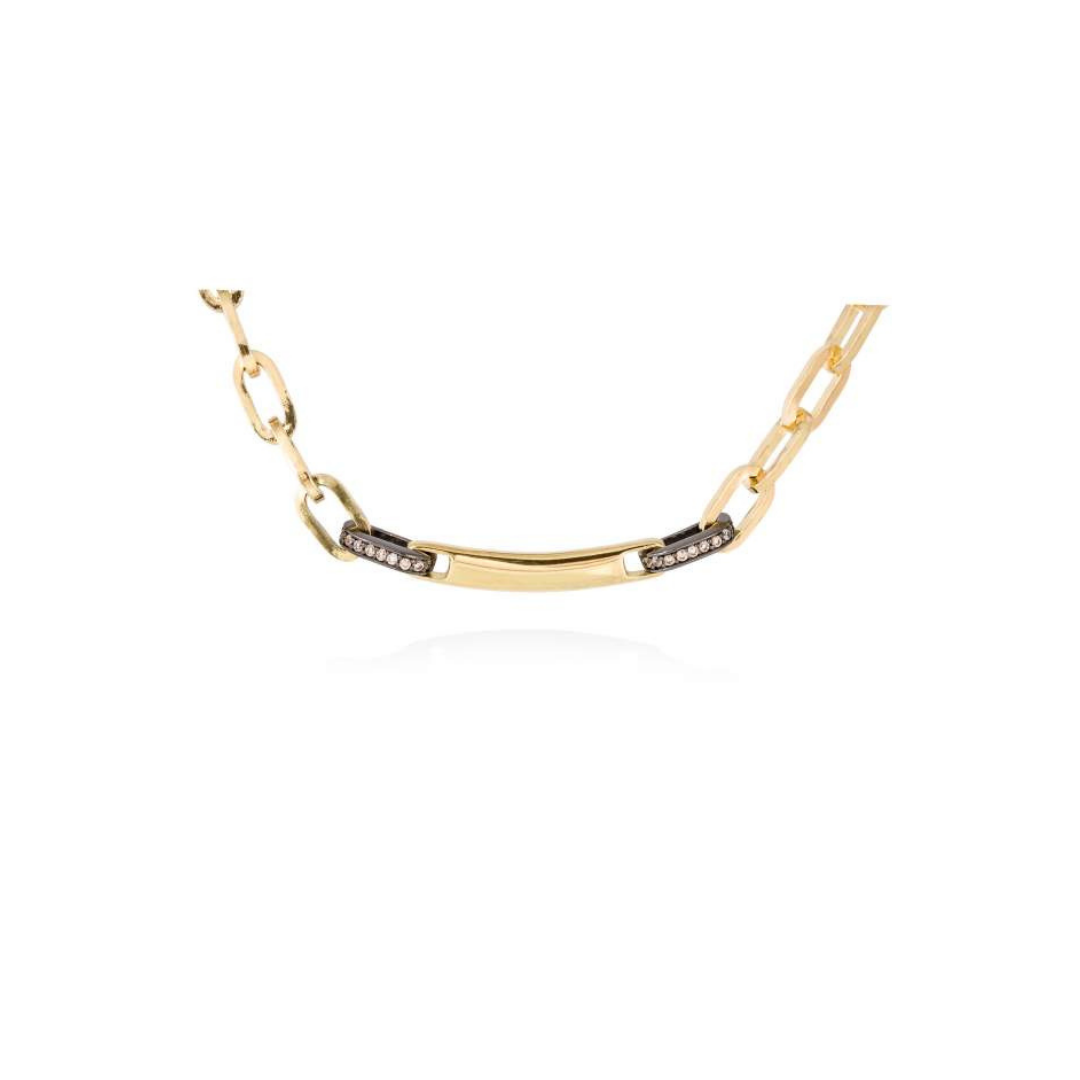 Gargantilla de plata de primera ley (925) con baño de rutenio y chapado en oro amarillo de 18kt con circonita coñac. (largo: 42 cm.)