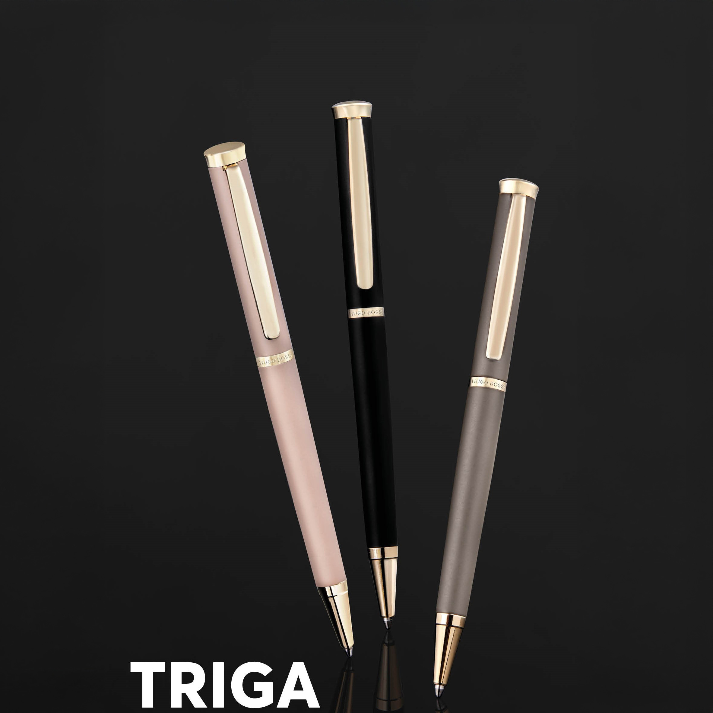 El bolígrafo Sophisticated Matte Taupe de HUGO BOSS es parte de la nueva línea femenina Triga. Con tonos cálidos y neutros, como el topo y nude, este bolígrafo es ideal para quienes buscan un estilo refinado. El acabado chapado en oro le da un toque de lujo y feminidad.