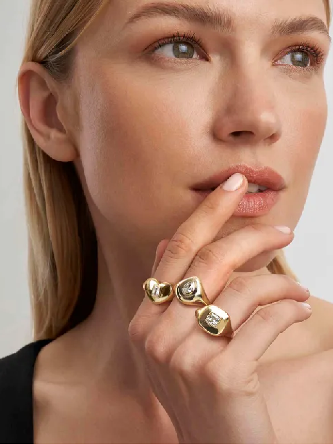 Anillo ajustable en plata 925 con acabado en Oro amarillo, pavé de Cubic Zirconia y con símbolo de Gota. 2 Medidas disponibles y regulables: S 11-14 y M 15-17. Medidas del símbolo: 1,2 x 1,5 cm. Made in PRC. Líneas robustas y piedras voluminosas para una joya con carácter.