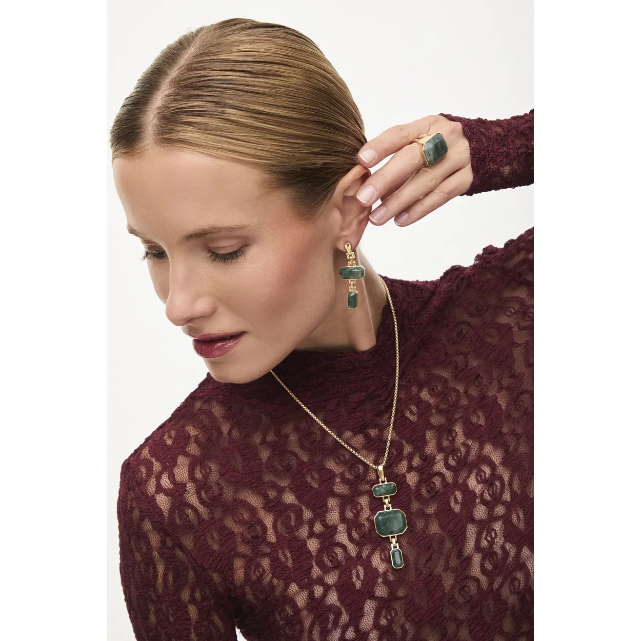 Pendientes de plata dorada Durán Exquse con ágata musgo – Edición Limitada – 00513570