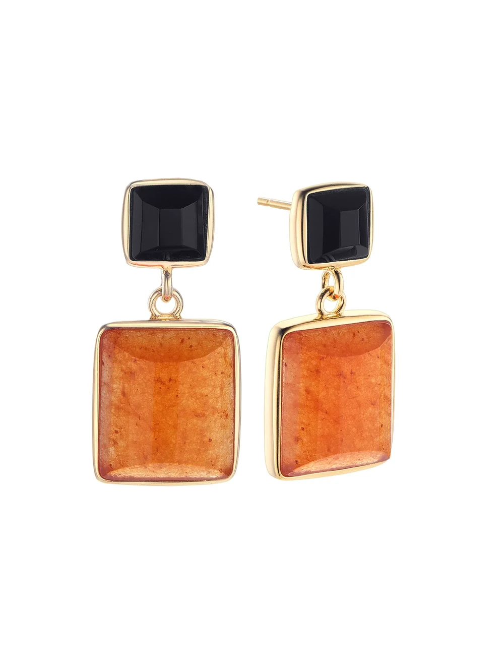 Pendientes Durán Exquse de la colección Alba fabricados en plata con baño dorado y cierre de presión. Protagonismo del ónix para un contraste elegante y actual.
