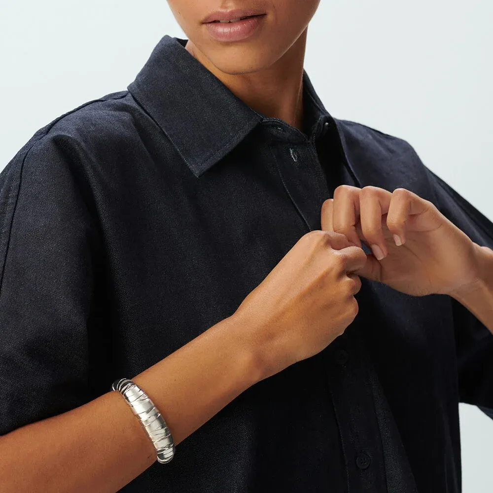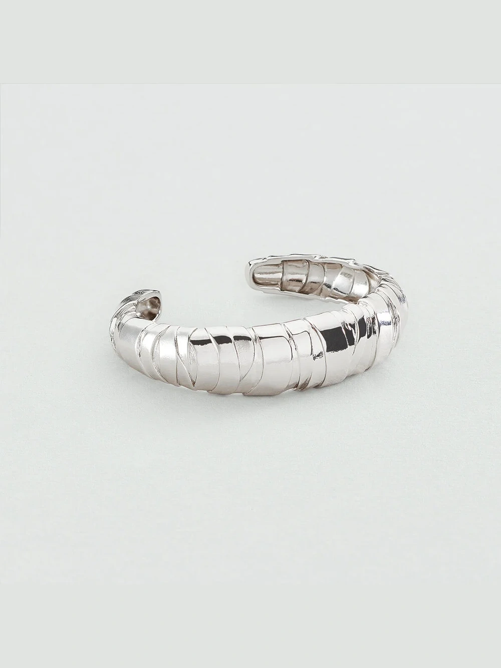 Brazalete abierto en acabado plateado con textura característica de la colección BE by María Pombo para Agatha Paris. Pieza de tendencia absoluta que te salvará en cualquier situación. Su diseño chunky definitivo aporta sofisticación y estilo a tus outfits. Joya versátil ideal como fondo de armario, perfecta para tu día a día, la oficina, momentos especiales o planes con amigas. Diseño francés que fusiona elegancia con modernidad contemporánea.