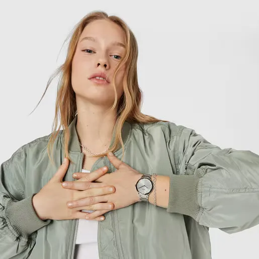 El reloj TOUS Karat Round combina el diseño joyero con la precisión relojera. Caja redonda con esfera metálica y detalles con cristales facetados.