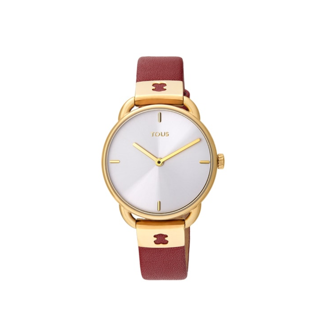 Reloj Let Leather de acero IP dorado con correa de piel roja