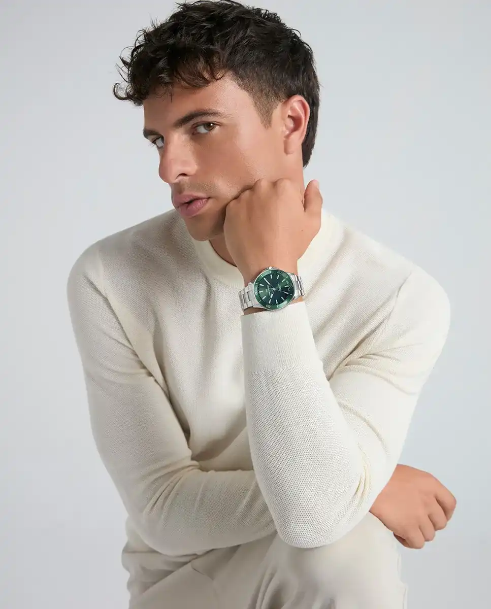 Modelo masculino con estética contemporánea que combina líneas limpias y funcionalidad. Construido en acero inoxidable