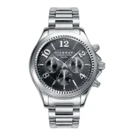 Agujas metálicas en contraste. Brazalete integrado con eslabones robustos. Cierre desplegable seguro. Cristal mineral plano.