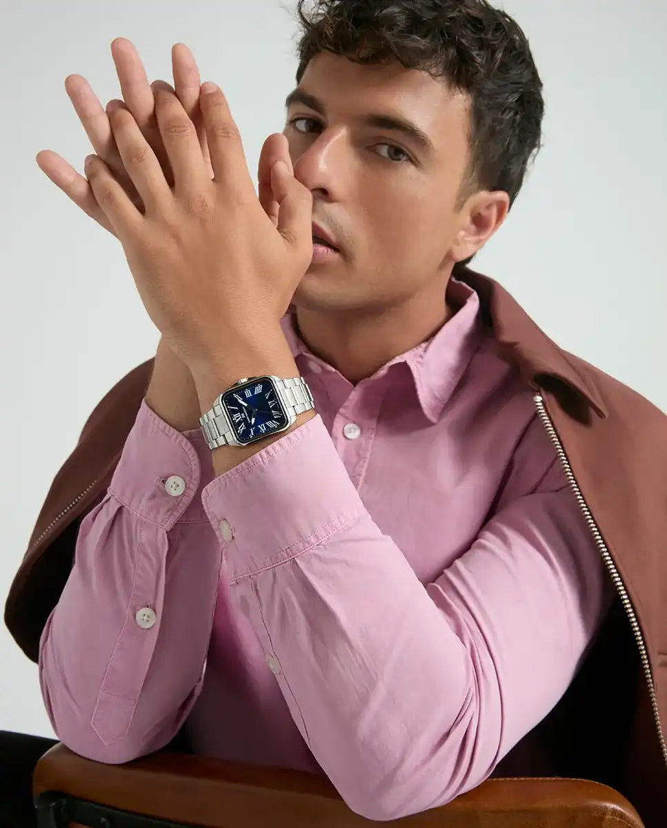Reloj masculino con innovadora caja cuadrada que rompe con diseños convencionales. Fabricado en acero inoxidable