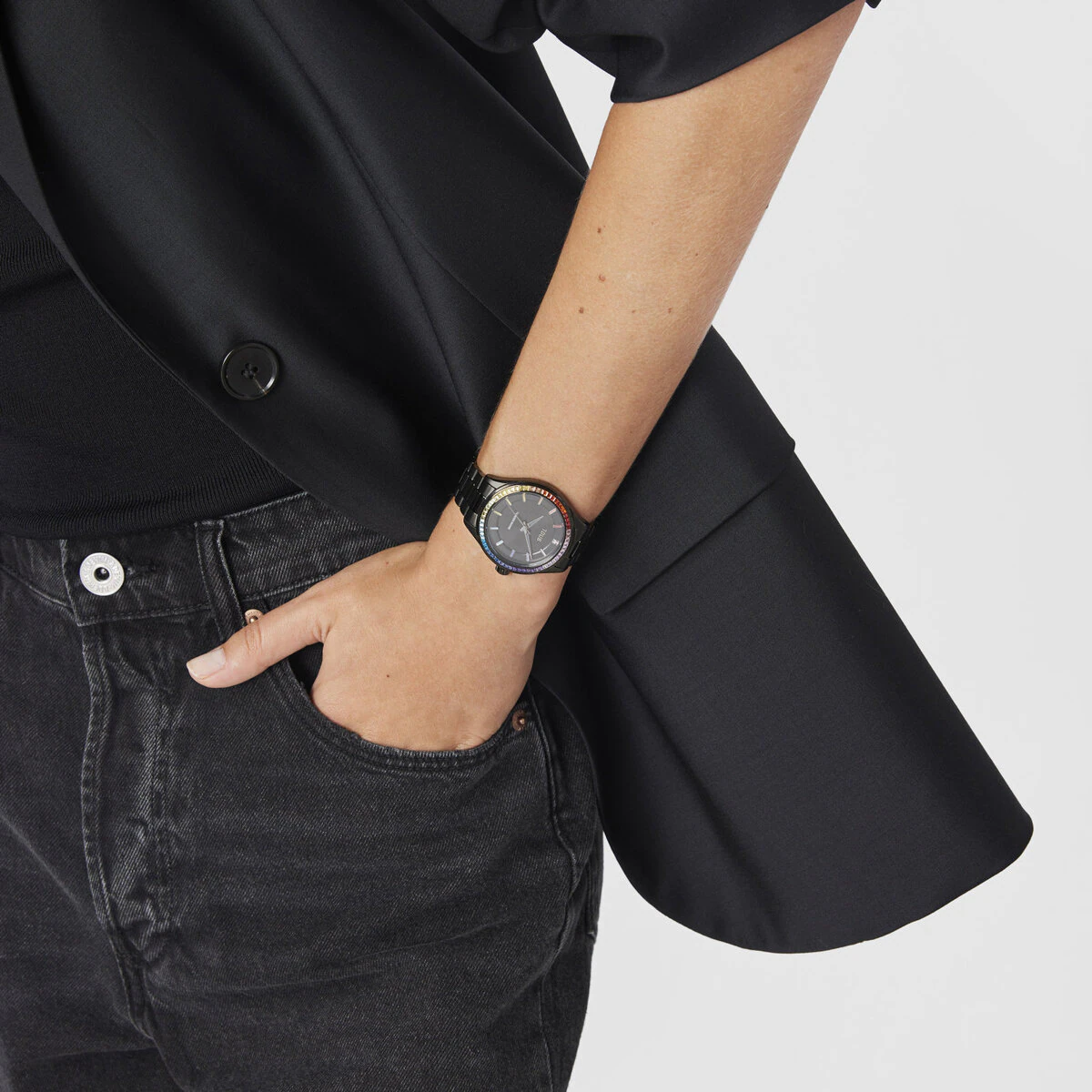 Descubre el reloj que se adapta a tu estilo. Con brazalete de acero IP negro y zirconias engastadas con efecto arcoiris, forma parte de la colección T- Shine y destaca por su versatilidad y diseño. Pura personalidad.