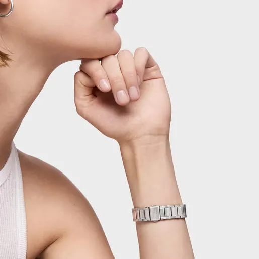 Elegancia contemporánea en el reloj TOUS Now KDT con brazalete de eslabones de acero. Con un diseño clásico y funcional, su cristal de zafiro plano antirreflejo protege el dial de 31 mm. Cuenta con cierre mariposa con pulsadores y resistencia al agua hasta 10 ATM.