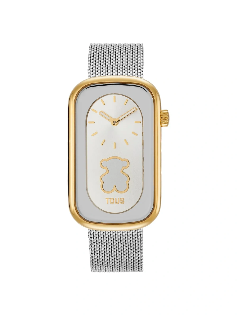 Inspirado en el icónico oso de TOUS, este reloj cuenta con una caja de acero dorado y un brazalete de acero inoxidable. La esfera de nácar con la silueta del oso grabada lo convierte en una pieza única y especial. Con resistencia al agua de 3 ATM, cristal mineral y cierre ajustable, es el accesorio perfecto para cualquier ocasión.