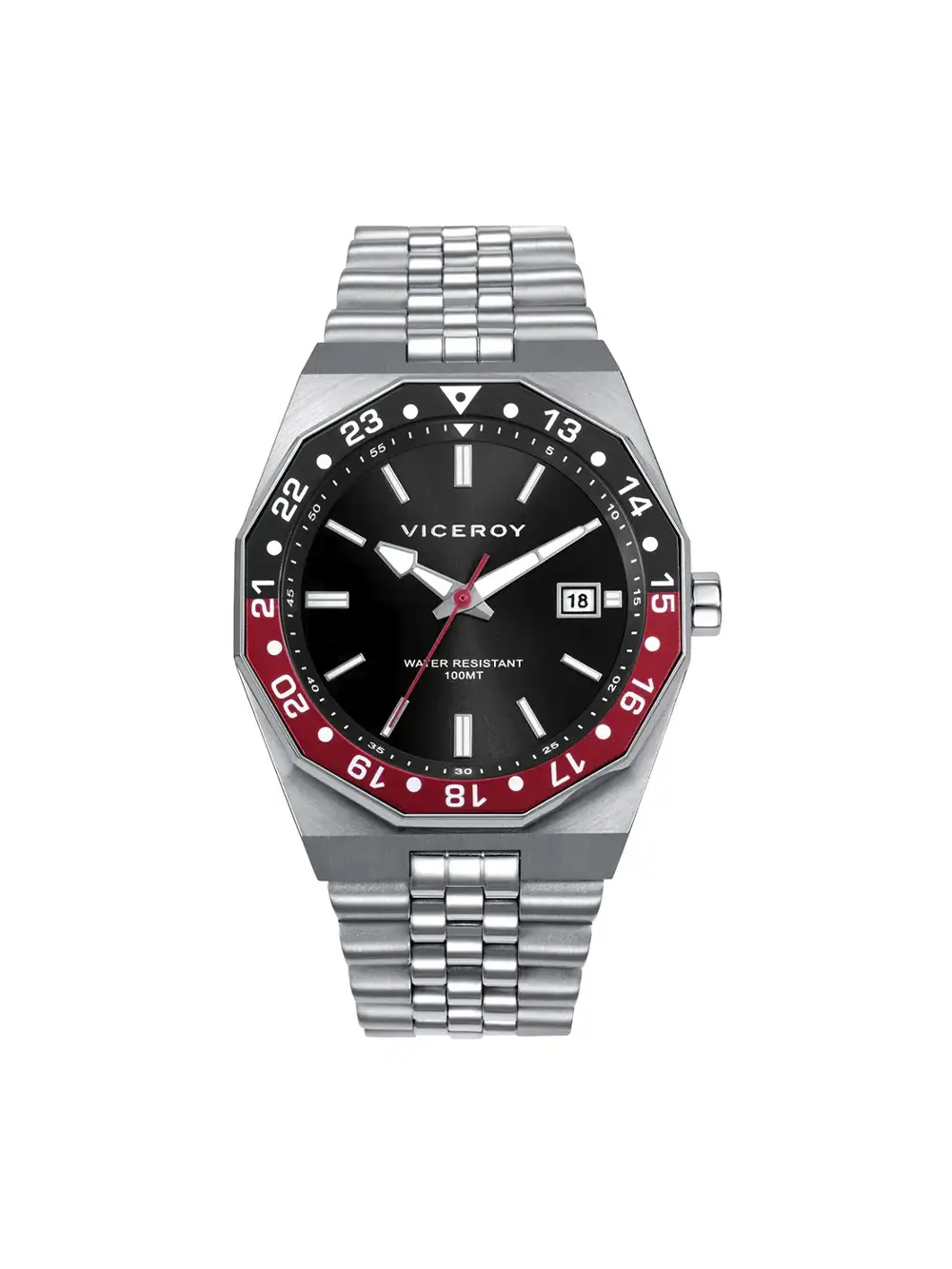 Reloj Viceroy deportivo de acero con bisel rotatorio y esfera gris 42461-57