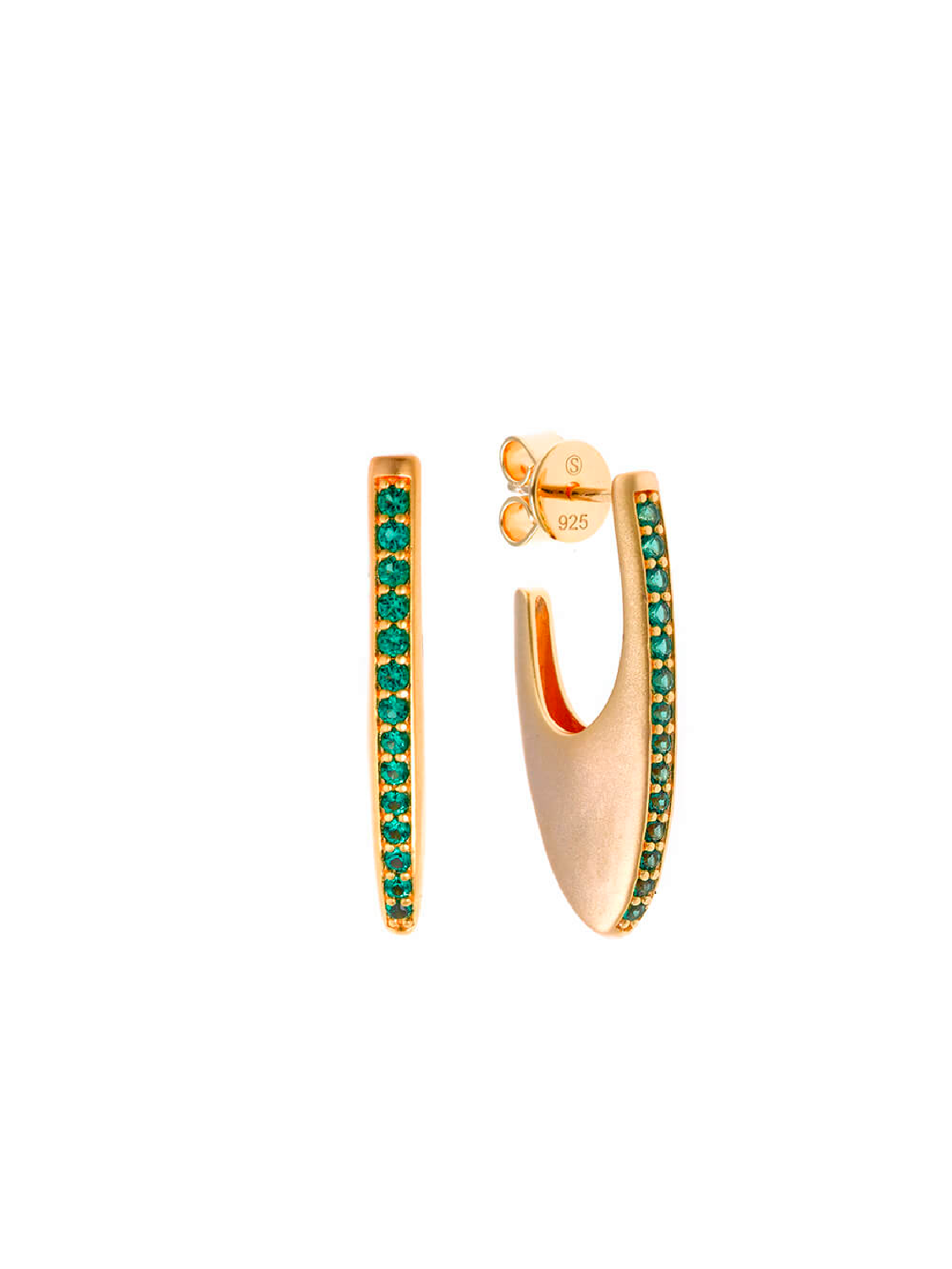 Salvatore Plata – Pendientes ovalados de plata con chapado en oro y circonitas verdes