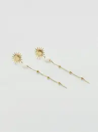 Pendientes largos AGATHA PARIS TIARE dorados con sol, cadena y perlas de nácar 02380736-094-TU