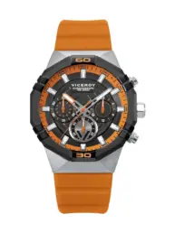 Reloj Viceroy de hombre Heat caja de acero con esfera negra y correa de silicona naranja 471161-57