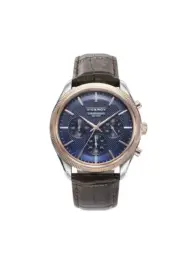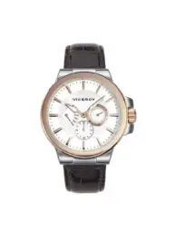 Reloj Viceroy de hombre acero dorado con correa de piel marrón, indicadores múltiples y resistente al agua 100 m 47827-07