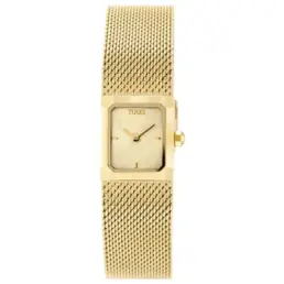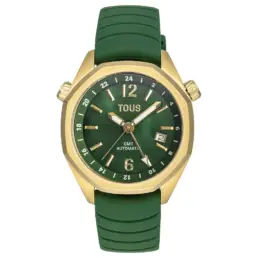 Reloj analógico TOUS Mini T-Bear con brazalete de acero inoxidable 316L y bisel interior de aluminio en color rosa, diámetro 28,2 mm y bisel con osos en relieve. Funciones: hora, minutos y segundos. Impermeable a 5 ATM. Batería: 1,55V Oxido de plata SR621SW/0,4 gramos. Movimiento cuarzo japonés. Cierre desplegable con pulsadores.