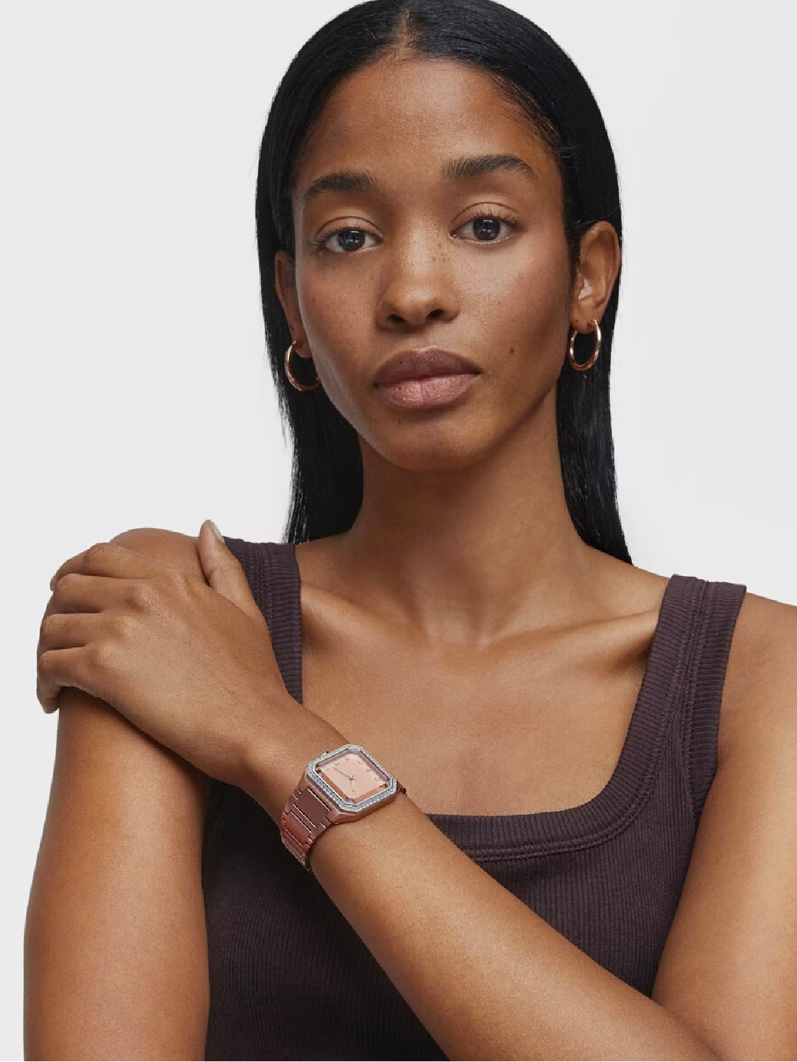 Karat Square aluminio está inspirado en las tallas princesa de las gemas preciosas. Presentado en los colores de temporada y en un ligero aluminio anodizado. Tres modelos de la colección con zirconitas engastadas en el bisel.