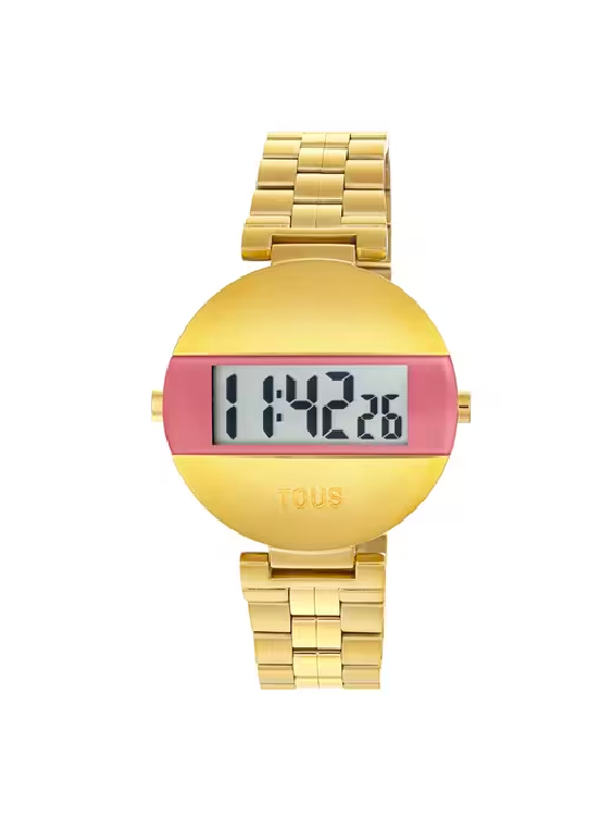 TOUS – Reloj digital con brazalete de acero IPG dorado y color rosa MARS