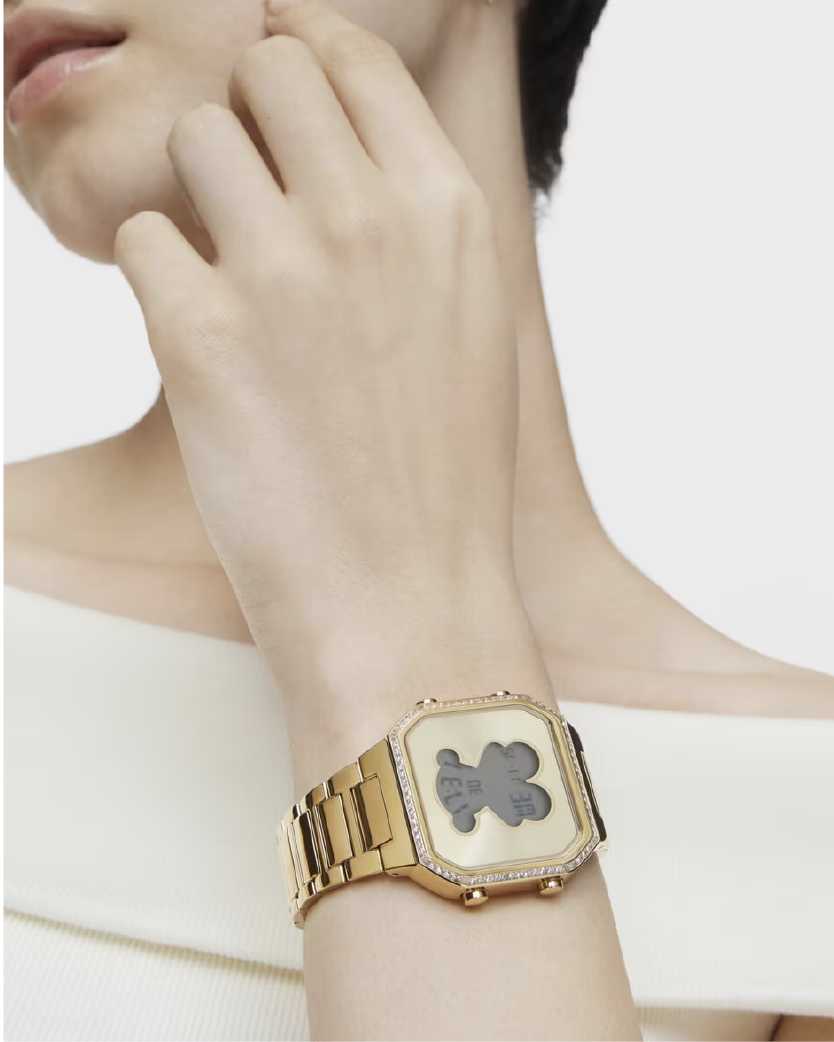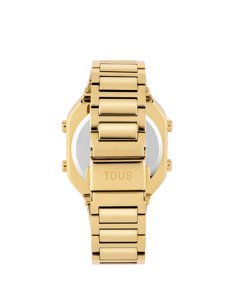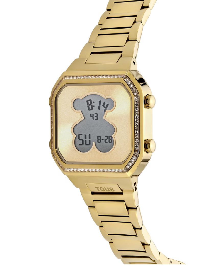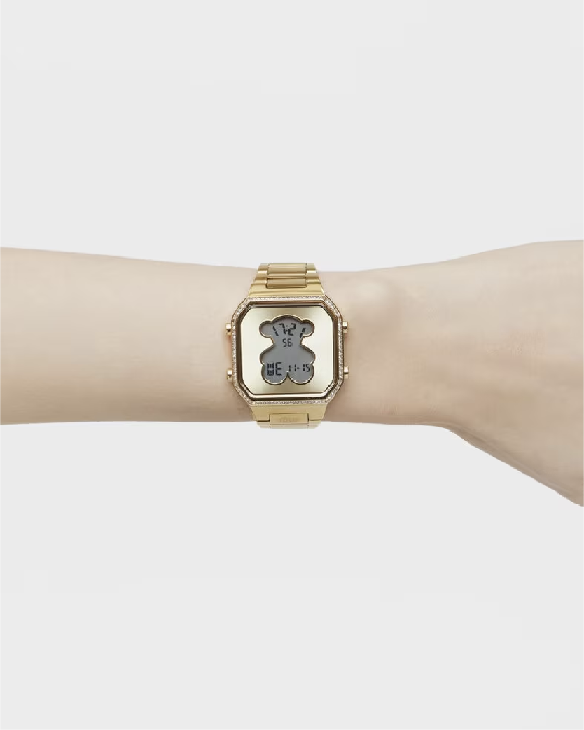 TOUS – Reloj digital con brazalete de acero IPG dorado y zirconitas D-BEAR