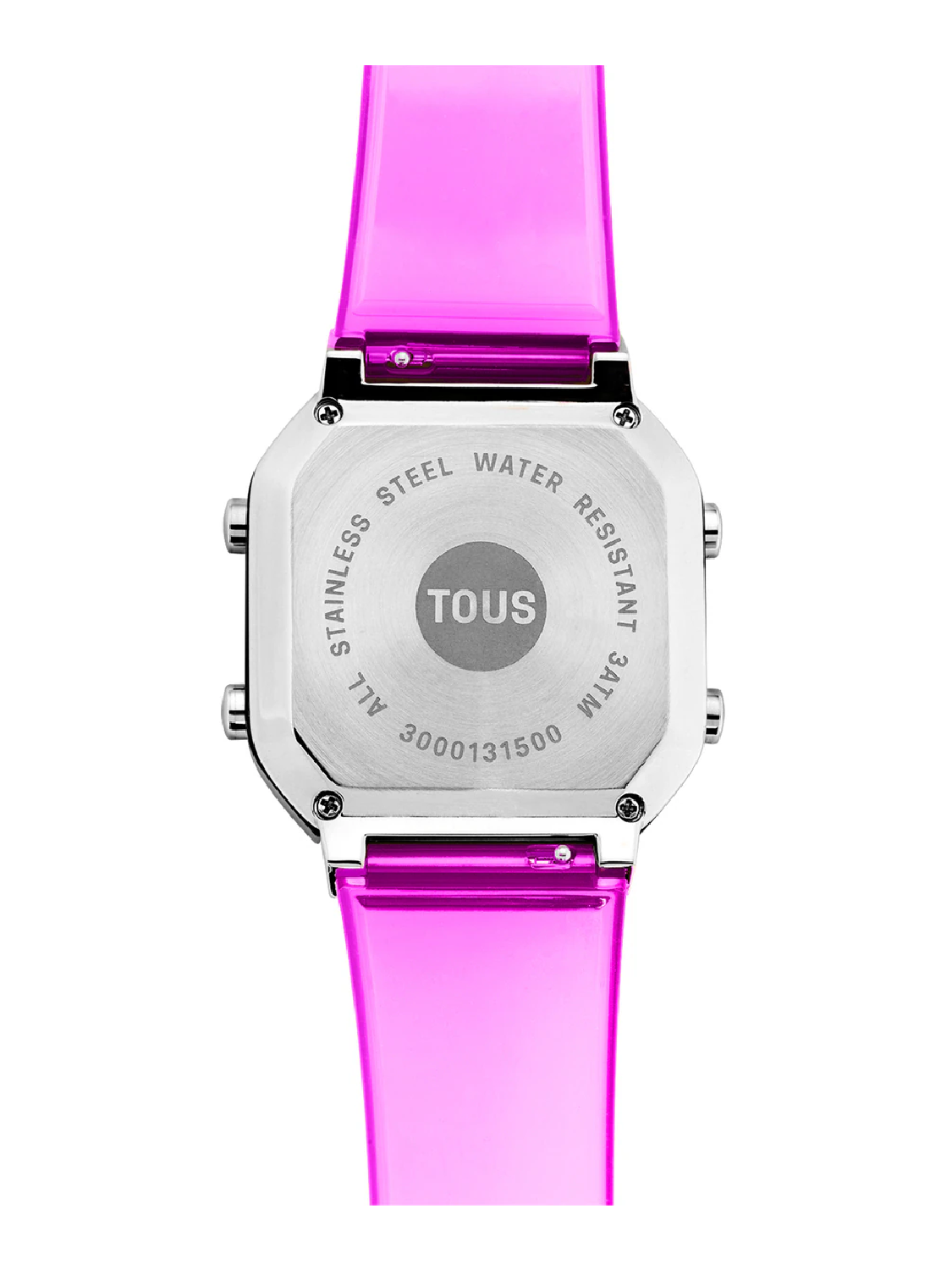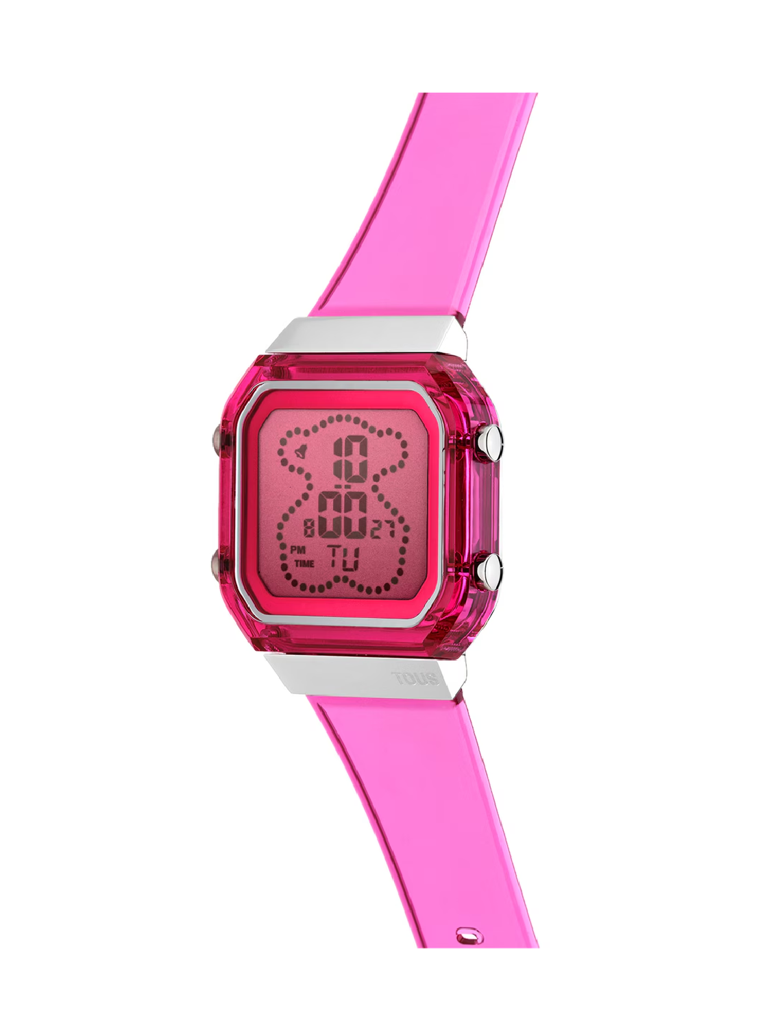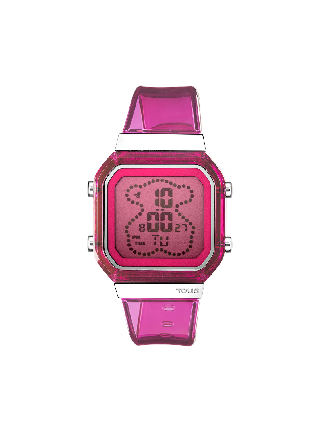 TOUS – Reloj digital de policarbonato fucsia y acero D-BEAR Fresh
