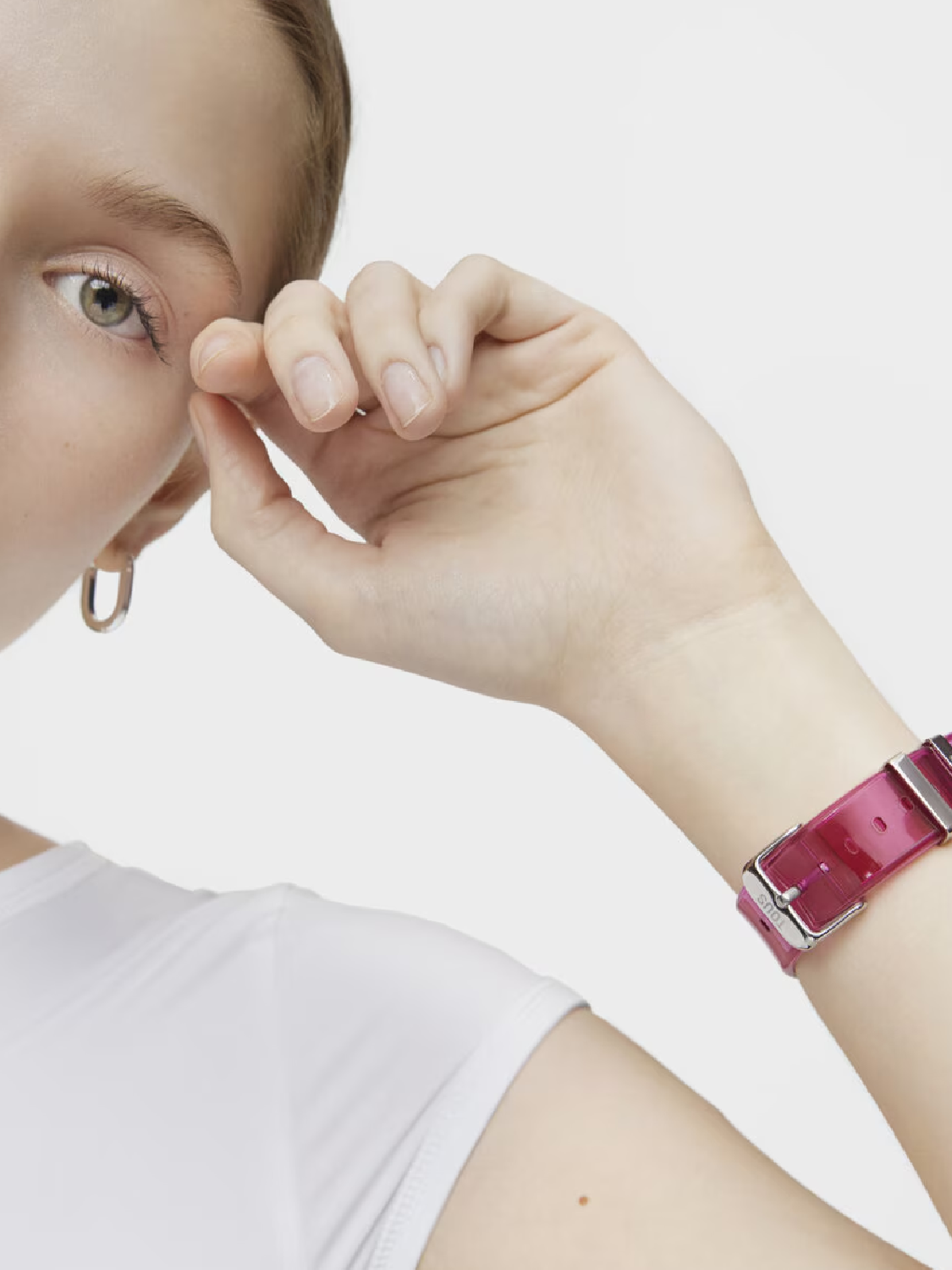 La declinación más fresca y joven del best-seller D-Bear. La caja está hecha con policarbonato de colores con acabado efecto cristal completamente transparente que deja ver su interior. Las correas son de poliuretano transparente del mismo color que la caja consiguiendo este efecto fresh en todas sus versiones. La pantalla digital juega con una segundera que construye el oso a medida que avanzan los segundos. Una colección que es pura expresión de color y frescura para este verano.